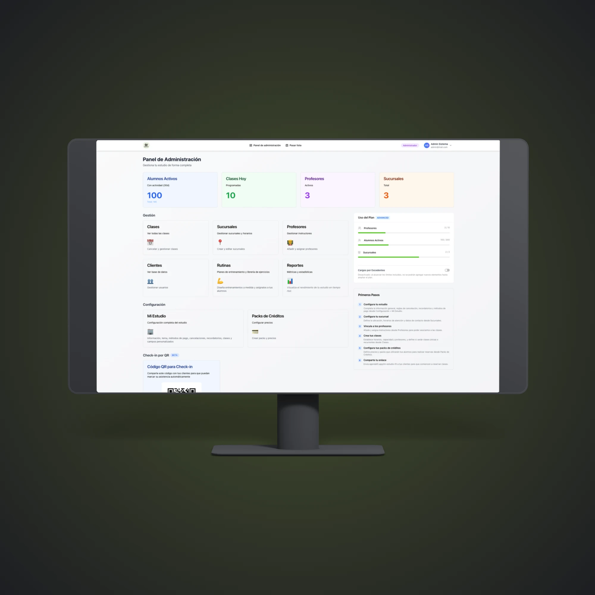 Control total del día a día: organizá reservas, asistencias, rutinas, packs de créditos, sucursales y más. Herramientas pensadas para ahorrar tiempo y reducir errores.